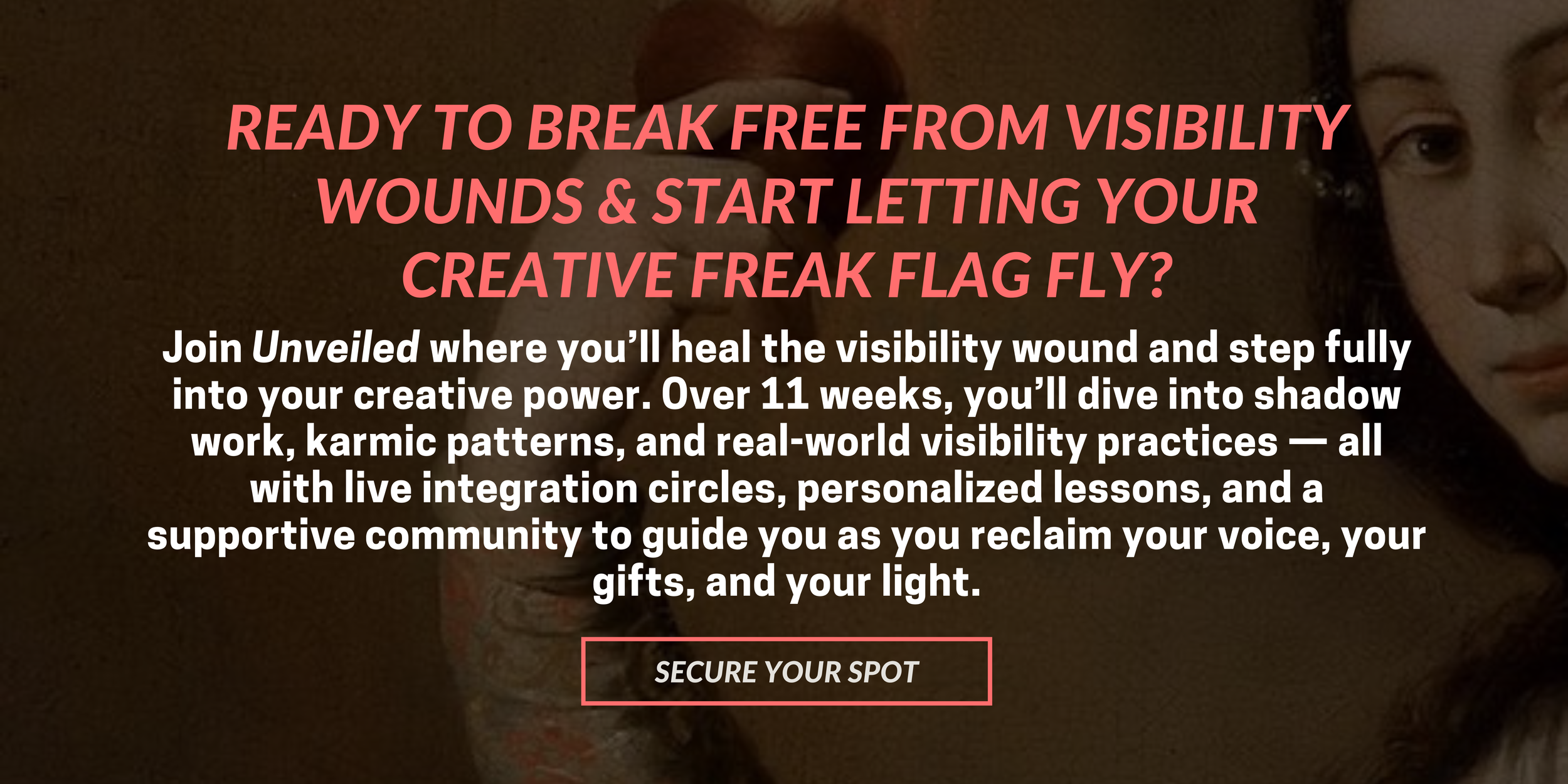 Ps, This is exactly why I created Unveiled: For the artist, the creator, the writer, the intuitive – the one who is done shrinking her fire to keep others comfortable.The soul who has always known they have something powerful to birth into this world, and it’s time to finally release the fear of being seen and step fully into the light.